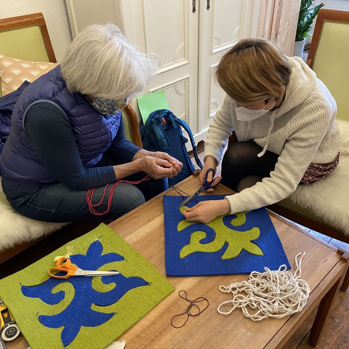 Begleitet wird unser Workshop von vielen Erzählungen zur Geschichte des Filzens und der Shyrdak Technik sowie über das nomadisch-geprägte Leben in Kirgistan, meinem Heimatland.