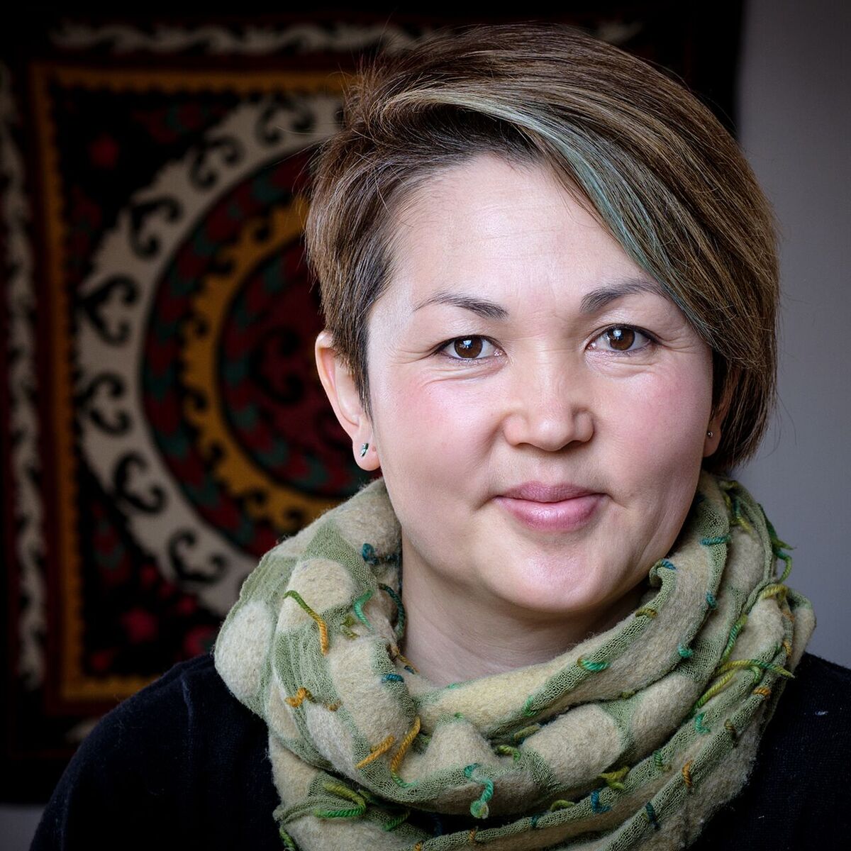 Mein Name ist Cholpon und ich bin aufgewachsen in Barskoon, am Ufer des Issyk-Kul, dem zweitgrößten Bergsee der Welt. Ich stamme aus der Familie eines Jurtenbauers und bin mit dem Filzen groß geworden. Für mich ist es eine tolle Erfahrung auch hier in Europa auf Menschen zu treffen, die sich künstlerisch mit Filz und seiner Herstellung auseinandersetzen. In meiner Kunst versuche ich die kirgisische Tradition einfließen zu lassen und gleichzeitig einen Austausch zwischen KünsterInnen der beiden Kontinente zu ermöglichen.
