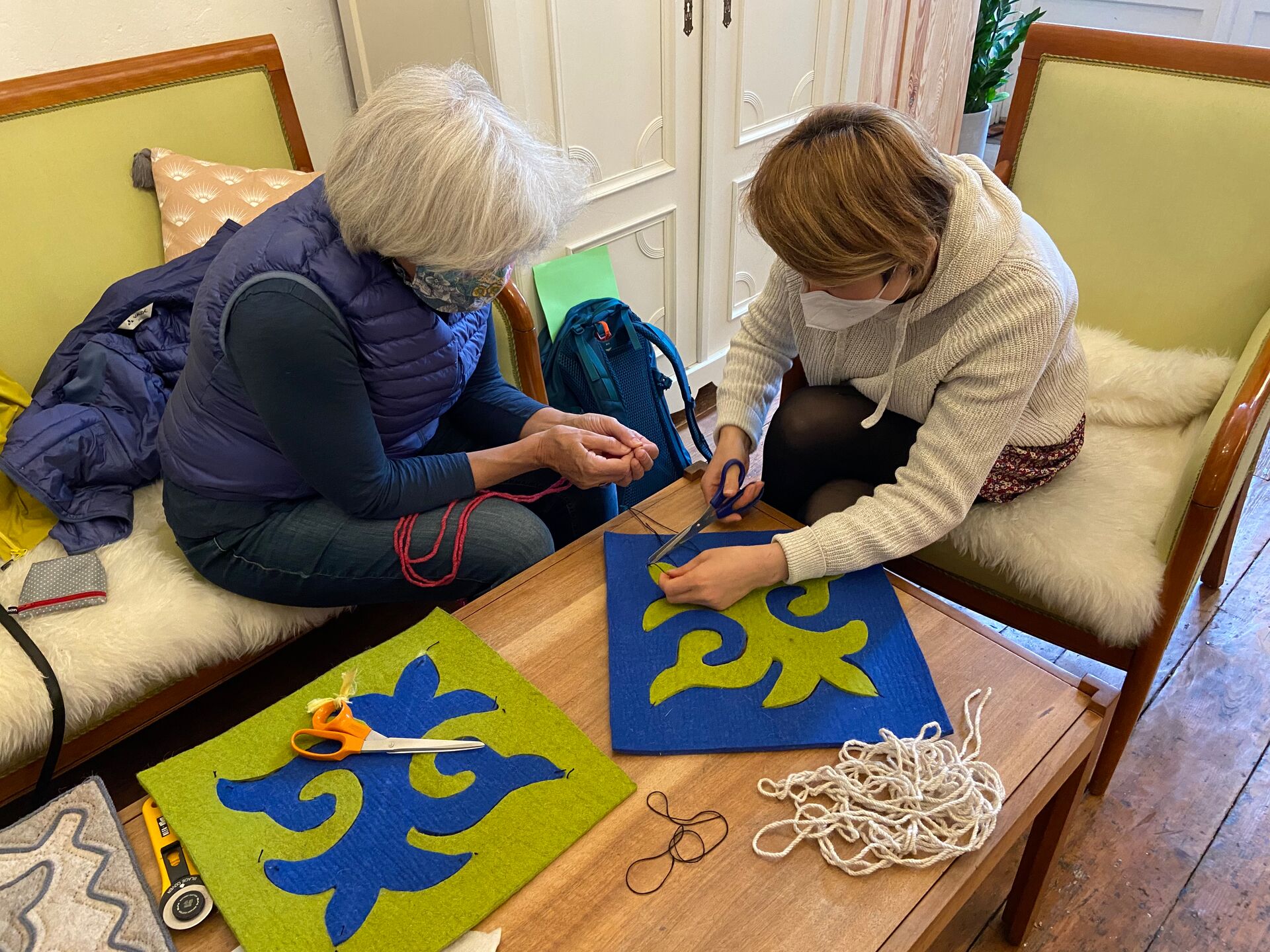 Hier habe ich die Filzkünstlerin Sigrid Schwarzenberger kennengelernt, mit der mich seitdem eine langjährige Freundschaft verbindet. Sie hatte zu diesem Zeitpunkt schon viele Erfahrungen als Filzerin gesammelt. Durch sie, die Entfernung zu meiner Heimat und meiner tiefen Verbundenheit zur kirgisischen Kultur, habe ich meine Leidenschaft für das Filzen wiederentdeckt. Während meiner dreijährigen Ausbildung zur Filzerin, konnte ich viele verschiedene Techniken, Formen und Figuren erlernen.